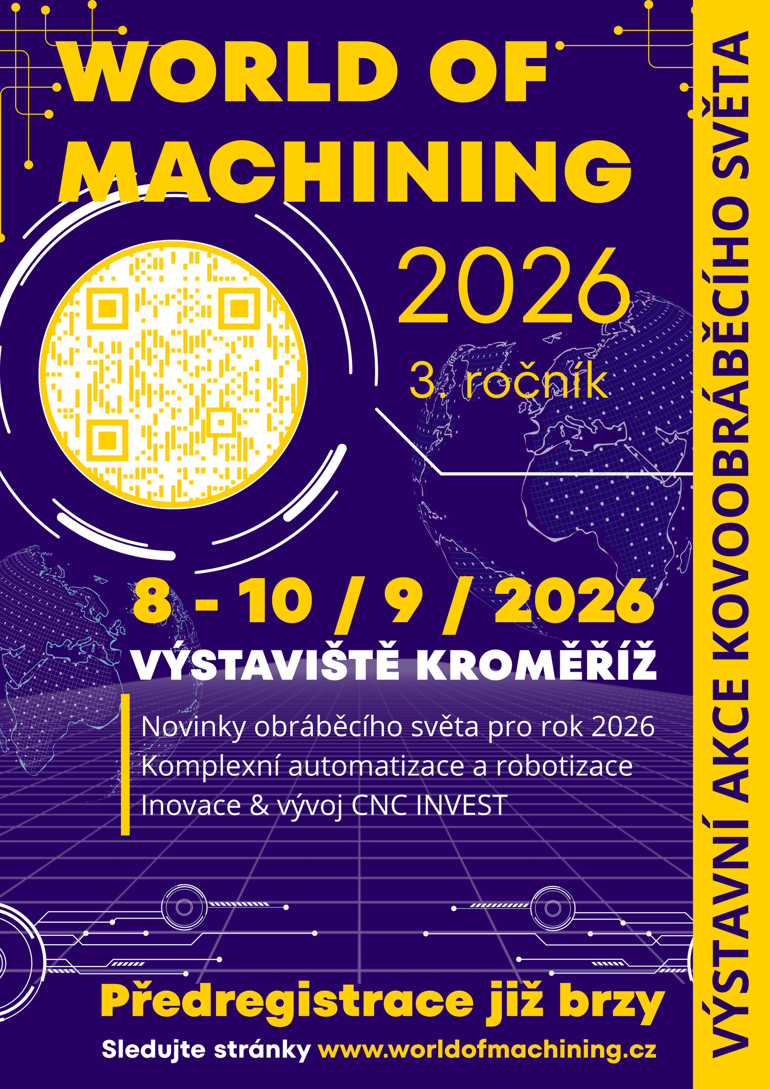 WORLD OF MACHINING, neboli SVĚT OBRÁBĚNÍ. Rádi bychom Vás touto cestou pozvali na druhý ročník výstavní akci kovoobráběcího světa s názvem WORLD OF MACHINING, neboli SVĚT OBRÁBĚNÍ. Filozofie projektu je nabídnout všem zájemcům, kterých se kovoobráběcí svět týká, maximální možnosti předních světových výrobců strojů, upínacích a řezných nástrojů, olejového hospodářství, softwarových možností, odměřování, a mnoho jiného. Společně s mnoha významnými partnery nejen třískového obrábění představí návštěvníkům novinky i převratné technologie, které obohatí nejednoho uživatele.